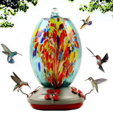 WONDERFUL COLORS TO ATTRACT HUMMINGBIRDS: The blue bottle is adorned with brilliant dots, attracting hummingbirds and adding glamorous colors to your courtyard.