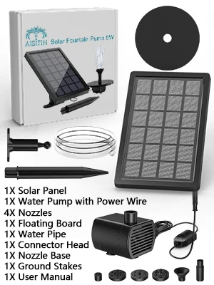 AISITIN DIY Solar Water Pump for Bird Bath 5W, Solar Powered Water Fountain with 4 Nozzles, DIY Solar Powered Bird Bath Fountain
