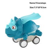 Press down on the dinosaur cape and the dinosaur will slide forward when you release it