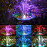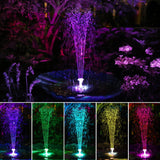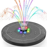 - [8 LED Solar Water Fountain]: Equipped with 8 LED lights solar fountain, 10 different colors, Color automatic cycle setting makes your night more beautiful. With 3000mAh battery, fully charged during the day and can work for up to 6 hours at night.
