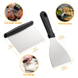 Stainless steel chopper/scraper - works pretty well as small spatula turner and is great for cutting food while grilling and scrape griddles perfectly clean.