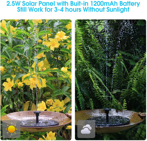• 【Battery 1200mAh】: It can automatically store power when working in the sun, and the work is more stable. Unlike other solar fountains, the latter will stop working immediately when there is no sunlight.