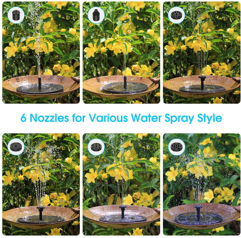 2.5W solar fountain pump, increased to 10V 2.5W high-quality solar panel with built-in 1200mAh battery, with 6 nozzles, solar aeration pump for bird tank, fish tank, pond or garden decoration.太阳能喷泉