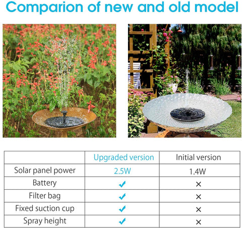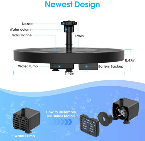 • 【Upgrade version】: The solar floating fountain water pump adds a 10V 2.5W high-quality solar panel, automatic energy storage solar energy, and a real green solar water pump.